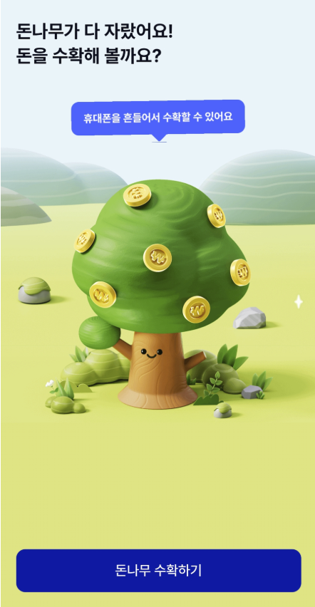 - 메인 화면 또는 혜택 탭에서 '돈나무 키우기' 선택