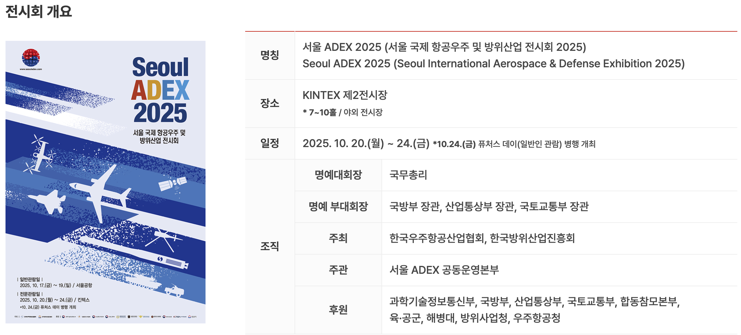 - 행사명: ADEX 2025 (서울 국제 항공우주 및 방위산업 전시회)